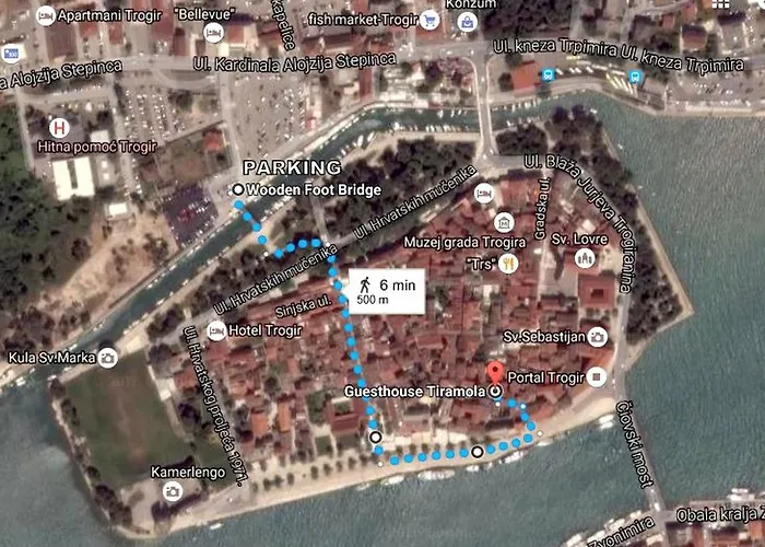 Trogir központja 5 perces sétával elérhető, az olyan természeti látványosságok pedig, mint a Park Ex Fanfogna, alig 8 percnyi sétára vannak. A Trogir City Hall továbbá csupán 150 méterre helyezkedik el az Apartments & Rooms Tiramola - Old Town. A hotel közelében megcsodálhatja a hegyeket. Az ingatlantól csak pár lépésre olyan látványosságok találhatók, mint például a Marmont's Gloriet. A Trogir városi hoteltől közelében van a csónakkikötő.